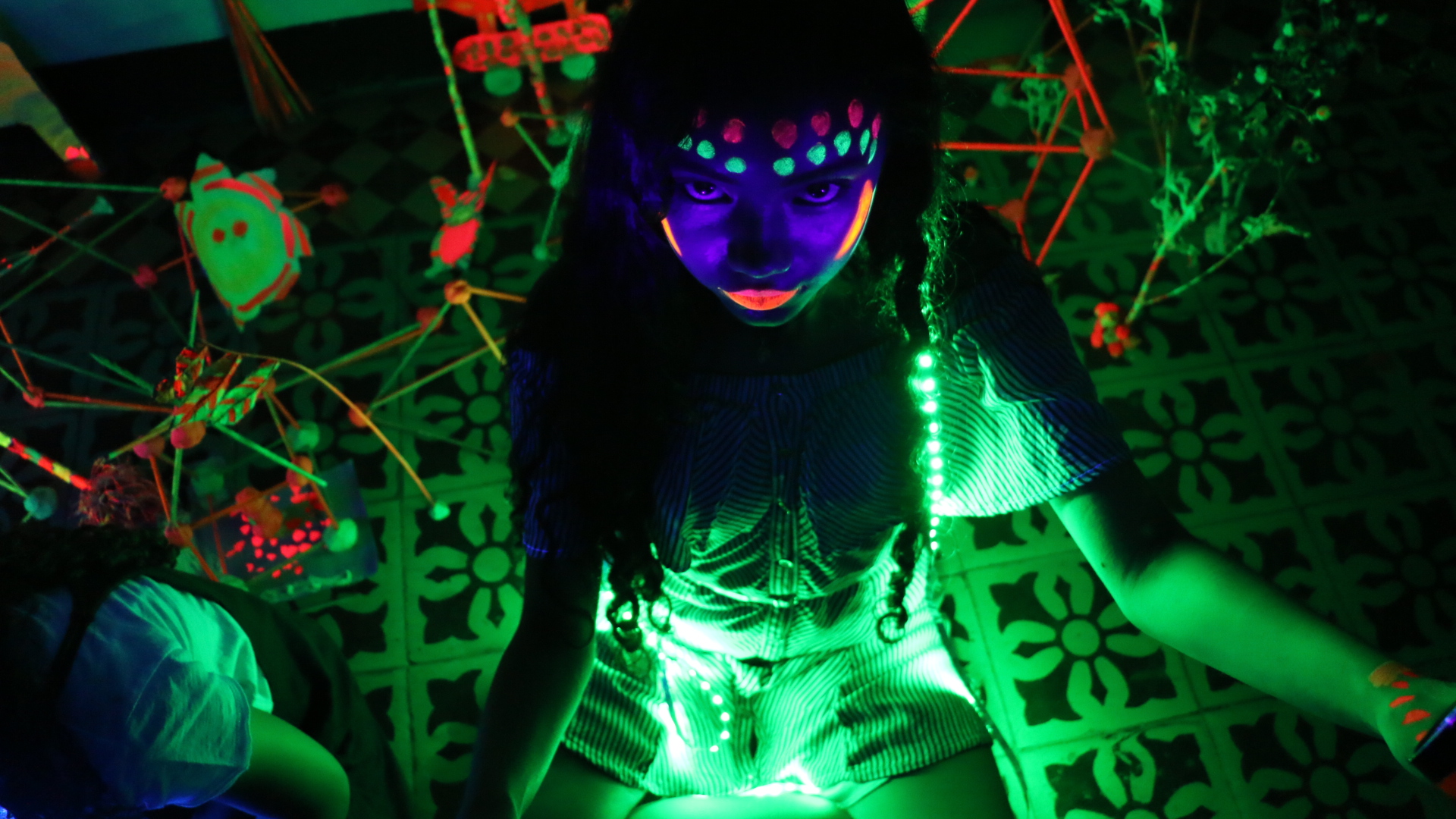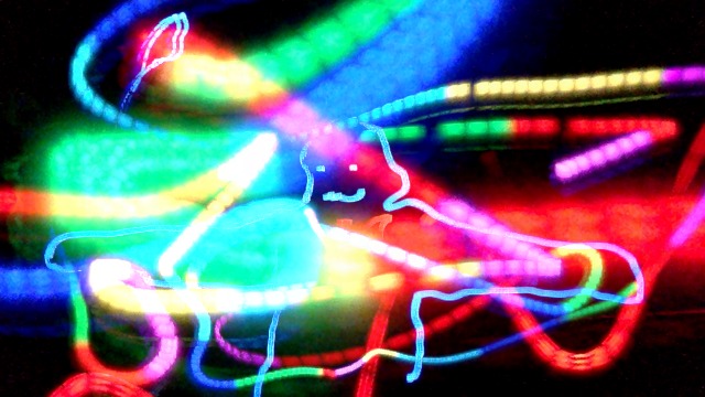 Este taller de lightpainting se realizó en colaboración con la escuela de oficios electrosonoros en La Casa Encendida (Madrid).Se trata de un taller donde se trabajaron la luz y la música como elementos para crear espacios audiovisuales envolventes e inmersivos pero de una forma fácil y divertida. El objetivo era la inmersión en directo de lxs participantes en un ecosistema audiovisual hipnótico creado por ellxs a partir del lightpainting con leds programados, la técnica del croma y luz negra.